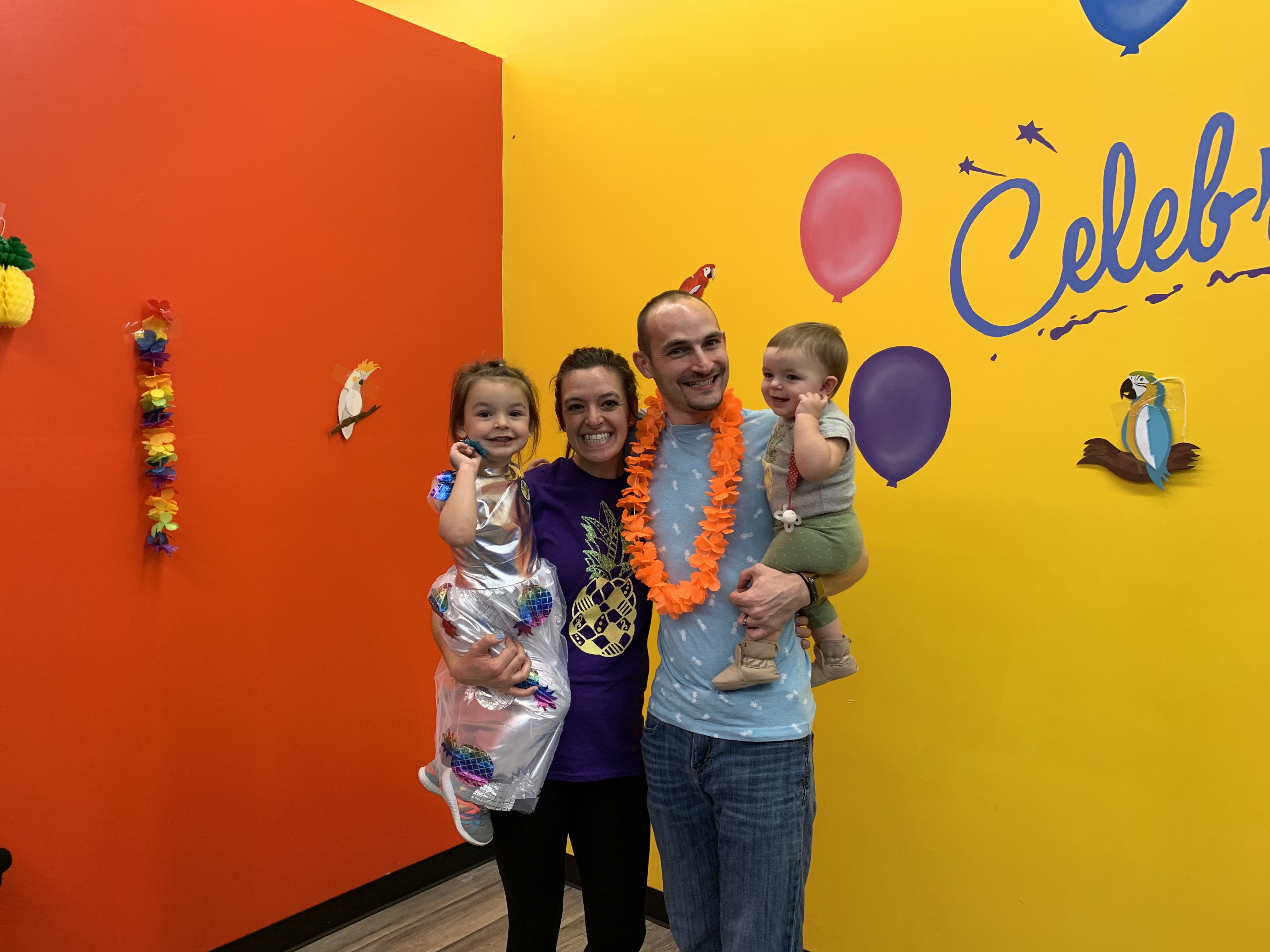 The party at Nickelmania was crazy! It was not the party of my dreams. I was not expecting to pay what they charged me for the party. I didn’t feel like I decorated the party room as well as I wanted. I couldn’t find the perfect adhesive for the Tiki Ears. “Freeze Dance” was not as smooth as I’d hoped and I didn’t have the right music for it. I completely forgot to practice freezing with Meeko so she didn’t know what to do. We didn’t play the Tiki Room song even once. Some of the other kids interfered with the integrity of Meeko’s birthday party. The arcade was packed with people so I didn’t get to enjoy the games as much as I’m used to. Meeko didn’t get a nap that day and she was worn out so quickly that I think she didn’t enjoy the time as much as she usually does. And to top it all off, I didn’t take any pictures of any of it (not even the birthday girl) so any memories I have will be from someone else’s perspective. Anyway, here’s our family celebrating the fact that we have kept our firstborn alive for 3 whole years.